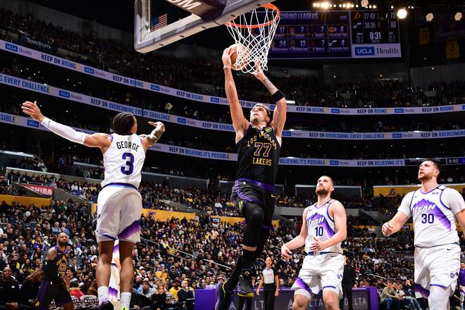 湖人队的东契奇得到37分、5个篮板和10次助攻,里夫斯得到26分和5个篮板,艾顿得到20分和14个篮板,拉拉维亚得到16分和4个篮板。勒布朗迎来赛季首秀,他得到11分、3个篮板和12次助攻,全场3分球3投2中,生涯三分球命中数超越雷吉-米勒升至历史第6。爵士队的乔治得到33分、4个篮板和7次助攻,马尔卡宁得到31分和5个篮板,米哈伊柳克得到13分和3个篮板,贝利得到13分,努尔基奇得到10分、10个篮板和6次助攻。