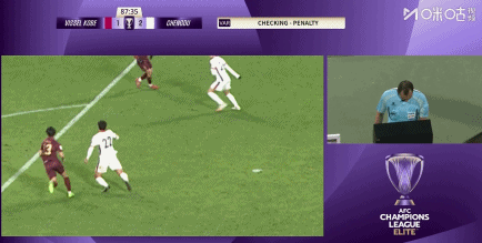 第75分钟,韦世豪下底传中击中井手口阳介手臂,主裁判果断判罚点球!费利佩主罚点球命中!蓉城在客场反超比分!2比1领先神户胜利船!