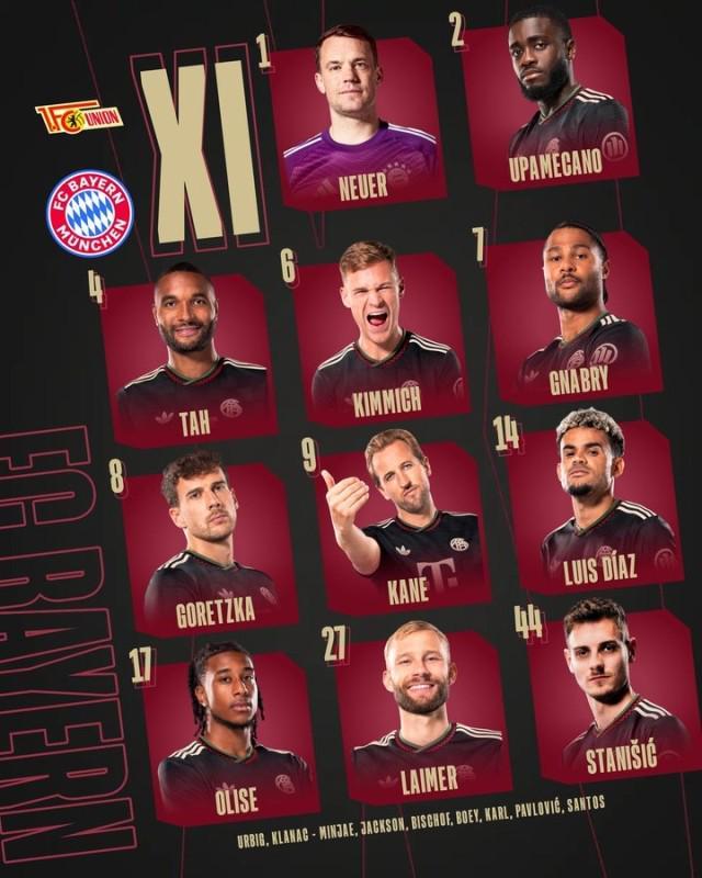 柏林联vs拜仁:凯恩领衔,奥利塞、迪亚斯、格纳布里出战